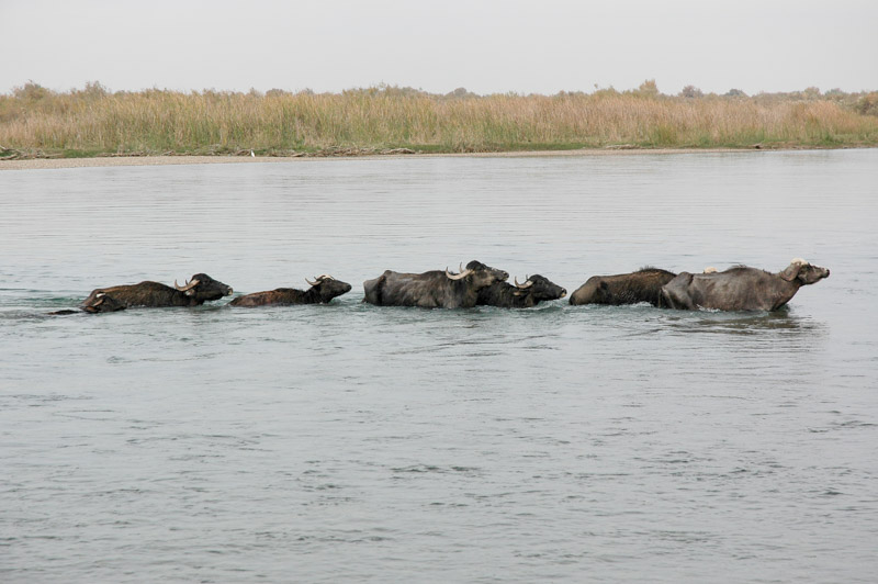 Sadly, the time comes to depart from my adopted family in Shush and as I leave the family home, Reza’s mother holds a copy of the Qur’an in the air, under which I pass whilst she says a prayer to wish me a safe onward journey. I stop in the ancient town of Shushtar to look briefly at the Sassanian-era dam on the Karun River, built by captured Roman soldiers in the third century CE, then continue southwards towards the provincial capital Ahvaz. In the outskirts of the city I stop in a car parts shop and after haggling over the price of my purchase, the two Arab brothers running the shop, Razi and Nasser, immediately invite me to the family home for a lunch of kebabs. They live in what appears to be a standard Iranian home, but the dynamic of the family is slightly different; less European with the men eating separately, reclining and shouting for the women to bring food, drink and all other accoutrements to the meal. South of Ahvaz the road becomes arrow-straight as it tracks the Iraqi border, with spiny acacia trees on one side and eucalypts on the other. The air becomes thicker as I near the Persian Gulf; a white haze at midday which turns to a warm, pale blue in the afternoon as the sun softens. To the west, an expanse of beautiful deep-blue water appears, and to the east is a sea of lush green reeds, chattering with birds. I am driving through the eastern edge of the Hawizeh Marshes, part of the great wetlands around the Lower Tigris and Euphrates rivers, on the Iraqi side home to the Marsh Arabs who continue a way of life not dissimilar from the ancient Sumerians.