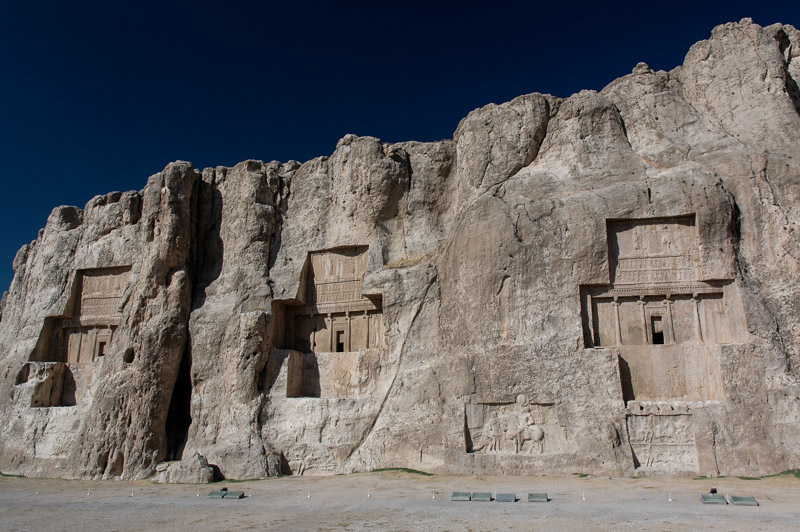 The following day, I return to the plain just north of Persepolis, to a site known as Naqsh-e Rustam, most famous for the striking rock-cut tombs of four Achaemenid kings, including Darius The Great and Xerxes I. The site is though to have been of significance to the Elamites, who left a now-faint carving from around 1000 BCE. Below the Achaemenid tombs are third and fourth century CE Sassanian reliefs, similar to those at Taq-e Bostan. It’s quite amazing to think that the Achaemenid tombs were already seven to eight hundred years old when the Sassanians left their mark. This area was clearly also of cultural importance to the Sassanians and their early capital of Estakhir lies just across the road, though like the Achaemenids they soon moved their capital west to modern-day Iraq. Crossing a ridge to the north of the Marvdasht Plain lies Pasargadae, the Achaemenid capital of Cyrus II (Cyrus the Great) prior to the construction of Persepolis. Here lies the simple yet imposing tomb of Cyrus the Great, on a tall, stepped plinth; the great founder of the Achaemenid Empire, a king renowned for his respect for all subjugated nations and declaration of human rights, liberator of the Jews from Babylon and the only non-Jewish messiah in the Old Testament. In a country so overwhelmed with intransigent theocratic rhetoric, this elegant tomb of the founder of a great empire who lived long before any revelation had come to the Bedu of the Arabian Peninsula, is perhaps the most common national and cultural emblem for the non-religious portion of Iranian society. It’s a portion of society whose existence the ruling clerics don’t like to acknowledge, and a history whose pre-Islamic nature the government are not keen to promote.