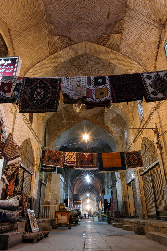 The modern capital of Fars Province, Shiraz lies around fifty kilometres south of Persepolis, and is the favourite city of many Iranians, a city known for its poets, literature and fine gardens and flowers. Shiraz was capital of Iran in the second half of the eighteenth century under the short-lived Zand Dynasty, and though it lacks the exotic architecture of Isfahan’s centre, it strikes me as a slightly nicer place to wander. For me, the highlight is the magnificent, vaulted Vakil Bazaar whose passageways lead to fine mosques, caravanserais and madrasas (seminaries), all well integrated into the cultural fabric of the city.