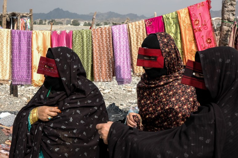 Mehdi and I make a trip to the nearby city of Minab, famed for its colourful Thursday market that takes place on a large, dry riverbed, with stalls spilling out quite haphazardly on the gravelly surface. Amid the stalls, a crowd gathers around one young man who wrestles a viper, then wraps himself in chains and appears to break free by his own strength, all in the hope of some donations from entertained shoppers. There’s also a slight air of corruption, and in the backrooms of the city there is a flourishing trade in illegal, smuggled alcohol. Most striking by far however, are the masks which some Bandari women wear here. These colourful embroidered masks, most commonly in rich shades of burgundy or vermilion, cover that small par of a woman’s face which is exposed by their chador and is a traditional fashion peculiar to this region of the Gulf coast. They seem hugely impractical, with a central vertical ridge dividing the sight of left and right eyes, but they are a striking dash of colour and novelty in a country where people generally dress in plain clothes.