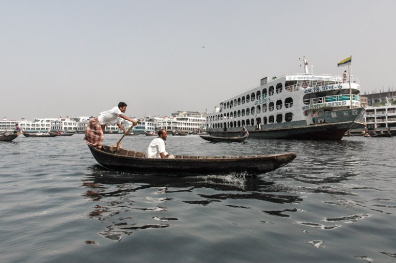 In Dhaka’s old city, on the bank of the Buriganga River, amid the stinking piles of rubbish which are being picked-through by the poor, one catches glimpses of past grandeur; elegant mansions now all but lost in a sea of modern sprawl. Down close to the riverbank is the Ahsan Manzil, the ‘Pink Palace’, in which Lord Curzon would stay when visiting the city. I take a short boat trip on the Buriganga, a moving mass of fluid so filthy it looks to be made as much from raw sewage and used engine oil, as from water, and can be smelt from across the old city. Huge sewage outfalls dump a constant stream of filth into the already black water, yet on the river’s shore, where a truly unspeakable accretion of muck exists, men sell food from roped-together wooden canoes, and women wash clothes. The Buriganga makes the Ganga look clean, and the Nile in Cairo look like spring water.