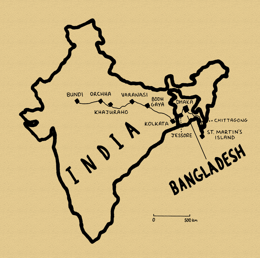 Having crossed the Indian Punjab and explored the impressive desert state of Rajasthan, I would now set off across the historic Gangetic Plain of northern India, following the Grand Trunk Road to the vibrant city of Kolkata, crossing into the teeming lowlands of Bangladesh and completing my eastward crossing of the subcontinent on the paradise island of St. Martin’s, overlooking the forbidden coastline of Myanmar.