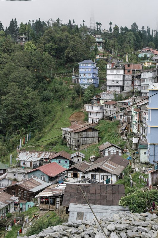 Following my recovery from this mysterious fever, I re-join the busy road which runs high above the frothing grey-white waters of the Tista River, the only road to the state capital. Gangtok is a mildly attractive city, situated in cool, green hills and consisting of multi-storied buildings perched on the steep land astride the main road. Its only really striking aspect is just how much cleaner and more organised it is than the rest of India, and I make the mistake of parking my car on the otherwise empty main road.