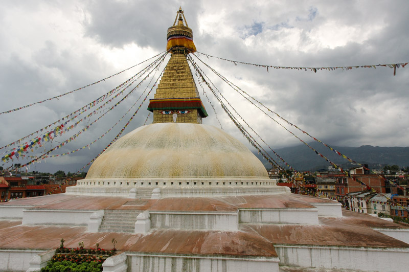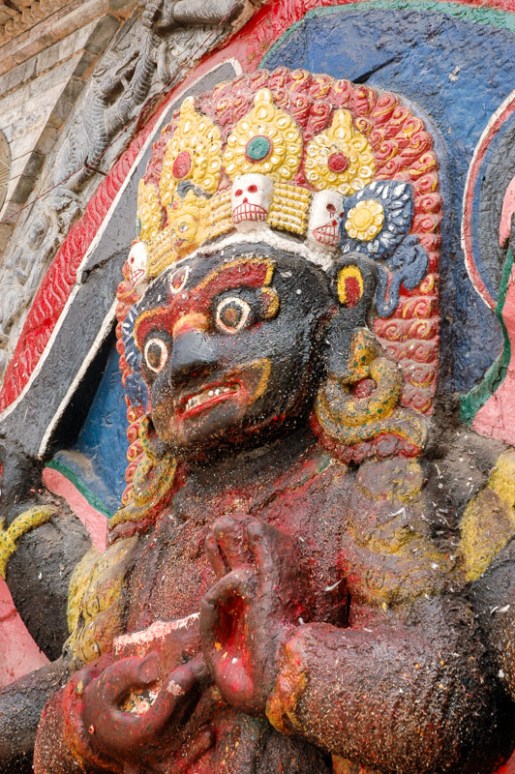 In the morning of the 28th May 2008, I cross into Nepal at its easternmost point and drive directly up into the foothills, reaching the capital well after dark. Kathmandu, as the capital of a famously beautiful and exotic country, is rather a mundane place, though not unpleasant. It’s less squalid than most of the subcontinent’s major cities, with a free-market air, and a noticeable presence of many western aid and development organisations. The city is surrounded by a backdrop of rolling green hills and distant snowpeaks, now almost permanently obscured by the haze and clouds of the monsoon. There’s a noticeable air of religious tolerance here, and indeed the country itself is a land where Hinduism and Buddhism sit easily side-by-side. The city’s most iconic building is the 8th century Boudhanath Stupa, painted with the all-seeing eyes of the Buddha and festooned with prayer flags. Across the city in Durbar Square are a collection of ancient Hindu temples dedicated to various deities, including a striking idol of the Hindu deity Kali, goddess of power and consort of Shiva. Here the air is alive with incense among distinctive Nepali architecture; red-brick temples with multi-tiered timber roofs.