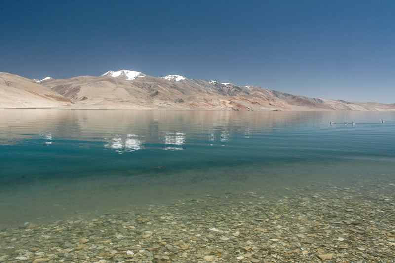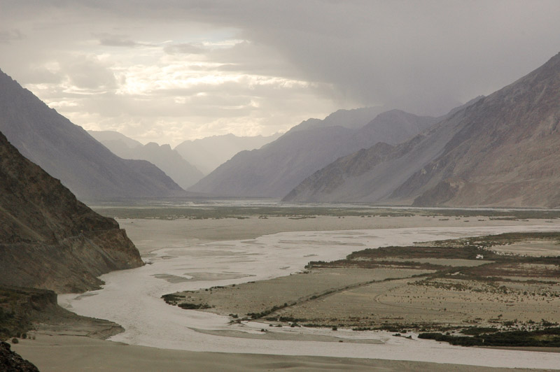 We spend two nights at Tso Kar, before pushing further east into the wilds, passing the tents of more Changpa nomads, who may very well be the strongest-smelling people I’ve encountered. We cross another pass, passing the magnificent Tazang Tso, pushing on to mirror-like Tso Moriri, where we strike another idyllic lakeside camp, watching jeep-loads of tourists who stop a few hundred metres from us for a compulsory two-minute photo stop, before heading on to the rather squalid lakeside settlement of Korzok. North of here, we descend through a purple-rock canyon to reach a river very dear to my heart: the Indus. Freshly arrived from its Tibetan headwaters, the river is small and milky from glacial inputs, and altogether different from the muddy, slow moving giant which I last saw in Sindh, five months ago.