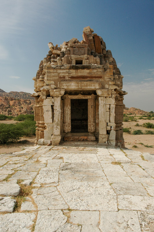 We turn off the paved road to the village of Gori, on whose northern edge we are surprised to find a large, multi-domed temple built on a raised platform from finely-carved white limestone, far more sophisticated than anything in the surrounding villages and towns. More intriguing is the fact that the temple is wholly abandoned; for it was constructed not by local Hindus, but by a now-vanished community of Jains.