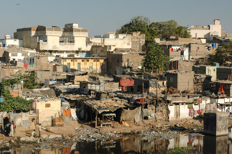 The weekend after our trip into the Thar, we leave Hyderabad in two cars to visit a friend of the family, Abdul Rehman, a fisherman who lives on the coast south-west of Karachi, very close to the border with Balochistan. We take the Super Highway south-west towards Karachi, whose shabby outer suburbs sprawl tens of kilometres from the city centre. The city authorities have very conveniently just completed the Lyari Expressway, a perfectly sealed, elevated road which literally cuts a swathe through the foetid slums. Homes lie half demolished, literally left with rooms open to the elements – where the bulldozers have cleared a path for the road, which hovers mostly just above the rooftops, a most unusual driving experience. Wretched lives unfold in the ripped-open slum below; people living in filth and squalor next to the stinking Lyari River; a toxic greeny-black body of sewage and garbage. Children pick around in the muck, whilst dhobi wallahs (laundry men) pound the city’s dirty washing in the filthy water, leaving it out to dry in the acrid morning air.