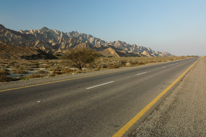 After a brief and unsuccessful attempt at obtaining a permit to visit the Makran, I decide to simply try and enter unannounced, hoping to take by surprise any police waiting at roadblocks. Crossing the Hub River into Balochistan, I pass through the chaotic industrial centre of Hub, home to much of the industry attached to Karachi, but soon enter the scrubby desert beyond, heading north towards the interior. The land is far poorer than the irrigated fields of Sindh; nothing but the occasional pomegranate farm and impoverished-looking Baloch herding camels and goats. With some trepidation, I take the turning onto the Makran Coastal Highway, encounter no problems with the police at the roadblock, and find myself on an arrow straight, perfect asphalt road. The landscape is utterly barren; a table-flat wasteland of thorny bushes, with the occasional camel’s footprint constituting the only signs of life. The sun is lowering in the sky, the road empty but for the occasional truck, and I have made my way into one of Pakistan’s more enigmatic destinations; conditions really couldn’t be better.