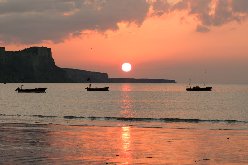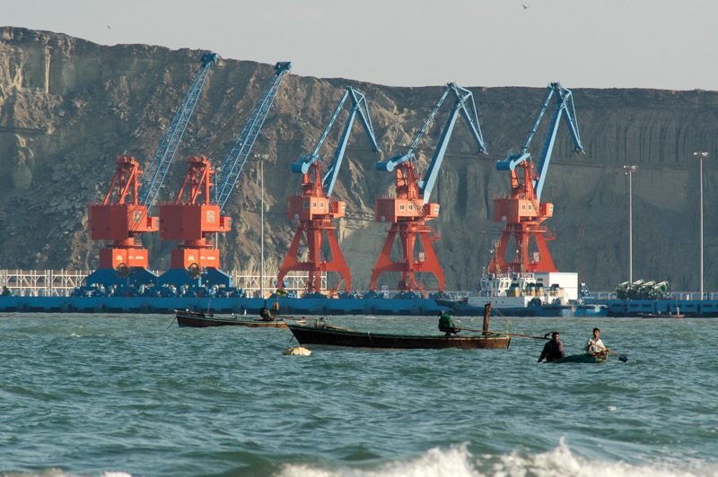 Gwadar lies on a hammerhead promontory which pokes into the Arabian Sea, creating two long, pristine curving sandy coves which shelter a fleet of bobbing wooden fishing boats. On the west side of the headland comes the surprising sight of a deep-sea cargo port, fully constructed at an initial price of a quarter of a billion dollars by the Pakistani and Chinese government, freshly painted and ready to go, but starting to rust before the first ship has called in. The port was heavily funded by the Chinese government (and will be run by a Chinese corporation) as a warm-weather deep water port for receiving oil from the Persian Gulf, from where it can be driven the length of Pakistan and over the Karakoram Highway into China to meet the country’s ever-growing energy demand. Despite the massive revenue-potential for Pakistan, due to some political machinations, objections perhaps from the UAE or India, or just local administrative corruption and incompetence, Gwadar remains nothing more than a fishing village and economic backwater.