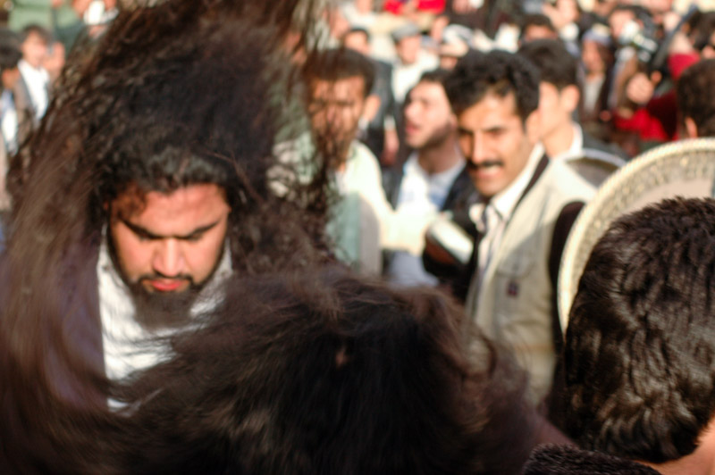 After making offerings at the shrine – the clearly pagan influences of the holiday hint at pre-Islamic roots – the men move up into the village where music on traditional daf drums begins, and the elders, arms entwined, begin a ritualistic dance. Two long-haired dervishes (Sufi ascetics) become the centre of the crowd, and feed from their frenzied energy, bounding into the air in a swirl of black hair, spitting razor blades from their mouths. Apparently the town clerics had requested the devishes to refrain from their wilder stunts such as pushing swords through their necks, or dousing themselves in petrol and setting themselves ablaze.