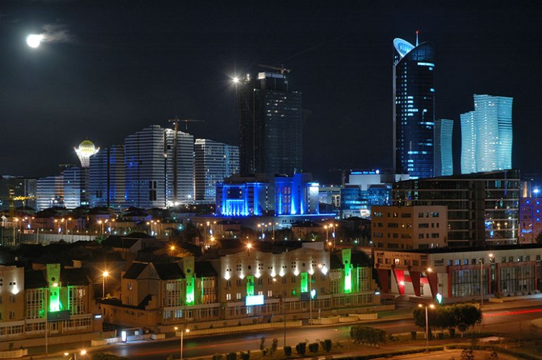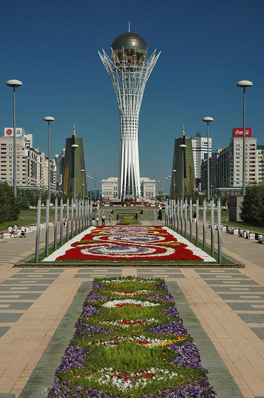 Astana is the impressive show-piece of Kazakhstan’s post-independence economic boom, almost entirely constructed since the mid-1990s out in the middle of the steppe, in a windy and fiercely cold location. Originally named Akmolinsk, the city was re-named in 1961 to Tselinograd, acting as capital of the Virgin Lands Campaign. Renamed Akmola at independence in 1991, this sleepy, nondescript provincial town became the capital of Kazakhstan in 1997, taking the title from Almaty and changing its name yet again to Astana. While Almaty was fairly reasoned to be too congested and unsuitable for major urban expansion, at risk of seismic activity, and tucked away in a far corner of the country rather close to the Chinese border, many also saw the desire of President Nazarbayev to construct his own city largely from scratch, and for it to be his lasting, tangible legacy to the country.