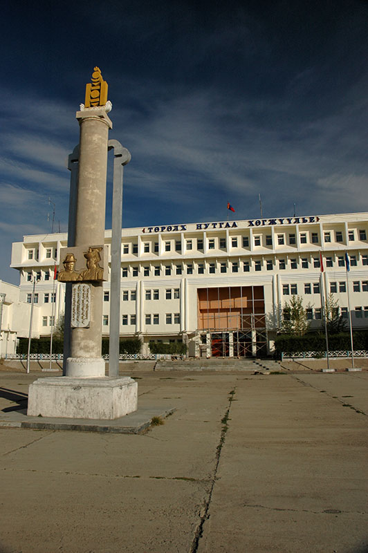 Later we come to the Ongi River and have a very welcome bath, then fording the river to join the asphalt of the ‘Southern Route’, Mongolia’s main east-west highway. In the morning we explore Arvaikheer, the capital of Övörkhangai Province which is a little smarter than most Mongolian provincial capitals. Rather than the usual crumbling communist-era concrete, here the provincial administration building has been smartened up and is positively elegant, sat behind a concrete slab-paved square with a stele bearing the Mongolian coat of arms. There is even a patinated bronze sculpture of what I assume to be a miner, though his features are clearly, and rather patronisingly Caucasian.