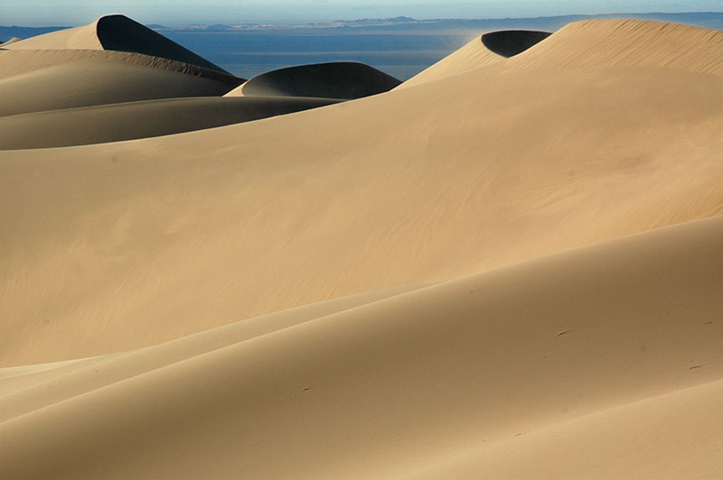 It’s a joyous moment when we get the truck through; we’re relieved not to have got stuck or worse, and thrilled at having finally almost reached our destination after a particularly strenuous journey from Bayanlig. We’re also noticed by a van full of Mongolian men who stop and of course start drinking vodka, inviting us over to join them. They’re a rough but good-spirited and generous bunch, but after a few bowls we manage to excuse ourselves before things get too wild, and drive south to our camping spot at the foot of Mongolia’s highest dunes, hoping to be far enough from the tourist jeeps and ger camps to have the desert to ourselves. In the late afternoon we haul ourselves up to a high ridge in the els, lying on our backs against the steep slipface of a dune in a rather blissful state. We are sitting atop a beautifully sculpted sea of yellow sand which extends around fifteen kilometres to the north-west, behind which, in the very far distance are black ridges of desert mountains close to the area we passed yesterday. The temperature is perfect, and watching the sun set from here is one of my absolute favourite moments of the trip, one that I will never forget.