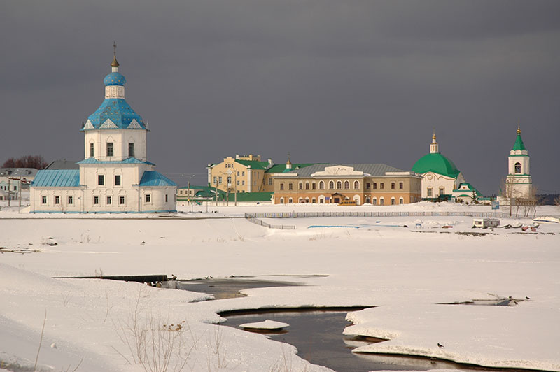 Cheboksary, named Shupashkar in Chuvash, was established as a Russian city in the mid-sixteenth century, on the site of what was most likely an earlier Bulgar settlement. Dimitry shows me around his native city which is attractively sited on the right bank of the Volga, here an endless white plain across which a few souls make the three kilometre hike from the opposite bank while large snow-clouds move in from the east. Unusually for a Turkic nation, the Chuvash are largely Orthodox Christian (with a minority following the traditional Chuvash animist religion) which results in a proliferation of churches in the city, especially in the now frozen Cheboksary Bay area, though all are purely Russian in style (and rite). While there is nothing in Cheboksary’s urban architecture which obviously distinguishes its non-Russian character, there is nevertheless at least something palpably vital about the Chuvash culture, lying somewhere between the near assimilation of the Mordvins, and the outright cultural assertiveness of the nearby Tatars.