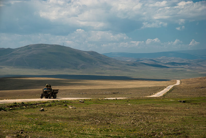 Beyond Akhtala the Debed Valley opens up as it drops towards the lowest point in Armenia, and when the river swings westwards to demarcate the Georgian border, I continue eastwards towards the border with Azerbaijan. The road turns south once more, crossing successive ridges until it pulls exactly level with the de jure border. Although the border here is not technically disputed, since the Nagorno Karabakh War, its various exclaves and salients have been smoothed somewhat, with each country (though more so Armenia) occupying territory formally belonging to the other.