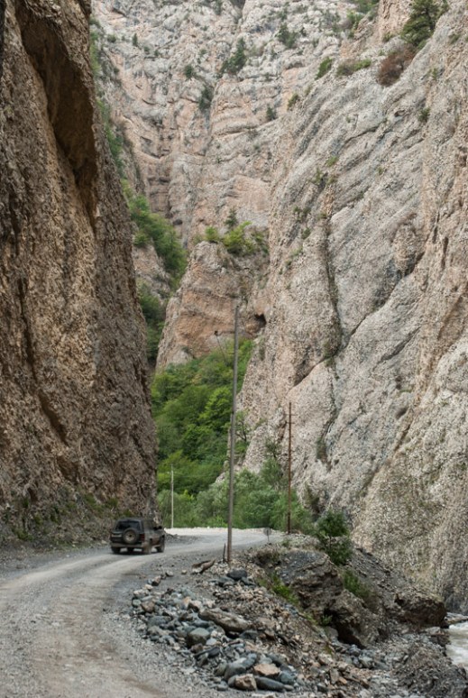 The following morning I drive around the southern edge of Lake Sevan, amid wide, open farmland, backed to the south and east by mountains. I stop on a pebbly beach on the eastern edge of the lake and watch a squall come in from the now steely-blue waters, blowing leaves off the poplar trees growing on the lake shore, a sure sign of the approach of autumn. After stocking up on food and fuel in the town of Vardenis, which has something of a frontier atmosphere, I climb eastwards on a surprisingly good road towards the Sotk Pass, which marks the border of the Nagorno Karabakh Republic. When applying for my visa back in Yerevan, I had been told that it was forbidden to enter ‘The Republic’ (which is internationally unrecognised, even by Armenia) via the Sotk Pass, but I wish to try regardless. After crossing the pass, which overlooks a huge slope of rubble generated by the Sotk Gold Mine, I descend into the forested hills of Nagorno Karabakh, a dramatic change in environment from the treeless, volcanic steppe around Lake Sevan. At a check post in the Levonaget Valley I’m waved straight through and soon after turn off the road and begin climbing up the Tartar Valley, towards the town of Karvachar (Kalbajar in Azerbaijani).
