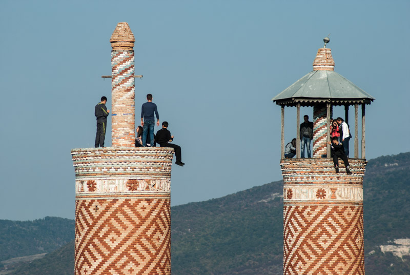 Close to Stepanakert is Shushi, which in contrast feels quite tragic. Clearly once an elegant city and cultural centre, Shushi calls to mind war, dereliction, ethnic cleansing and poverty. Among many abandoned and bombarded buildings, two once beautiful mosques, the Upper and Lower Govhar Agha, stand with sentinel minarets of beautiful, red and buff brickwork, poking above the straggling ruins of various other civic and civilian buildings. Neither are of course active, and the balconies of the minarets of the latter seem now to be used only by idle teenagers. There can be almost no prospect for employment in Shushi, and it seems that much of the population is elderly and penniless. Clearly once a beautiful place, I wonder what these old folk think of the age-old conflict, and whether they were really part of it, or just swept-up in the politics of inter-ethnic hatred. One moustachioed old lady rants madly at me as I take pictures of the minarets. Two roguish old drinkers cheerfully ask me for some money for a bottle. Sitting in a pavement bar a little later on, an old man confirms that this was once a beautiful city, then draws my attention to an Arabic inscription outside one of the mosques, and tries to convince me that it is French.