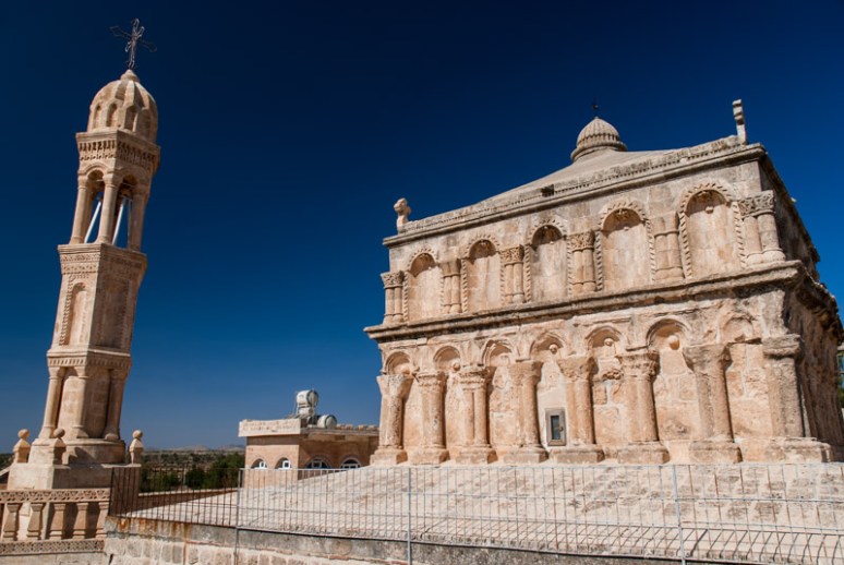 The road climbs briefly out of Cizre, tracking the edge of the Mesopotamian Plain onto an upland area known in the local Syriac language as Tur Abdin; a rocky, scrubby landscape dotted by Assyrian villages of attractive yellow limestone houses. Although the Assyrian population was decimated by the genocide of 1915, it was in Tur Abdin that the Assyrians put up a successful resistance to the bands of Kurdish irregulars armed by the Ottomans and sent to murder and expel Christians from Ottoman territory. This is therefore the only region of Turkey where Assyrians continue to live in their ancestral homeland, though they remain the subject of government harassment. I stop at the Mor Gabriel Monastery, established in the late fourth century BCE making it the oldest Syriac Orthodox Monastery in the world. Still active, Mor Gabriel has weathered the Mongols, Tamerlane and Ottomans and remains a delightfully tranquil sanctuary in this troubled region.
