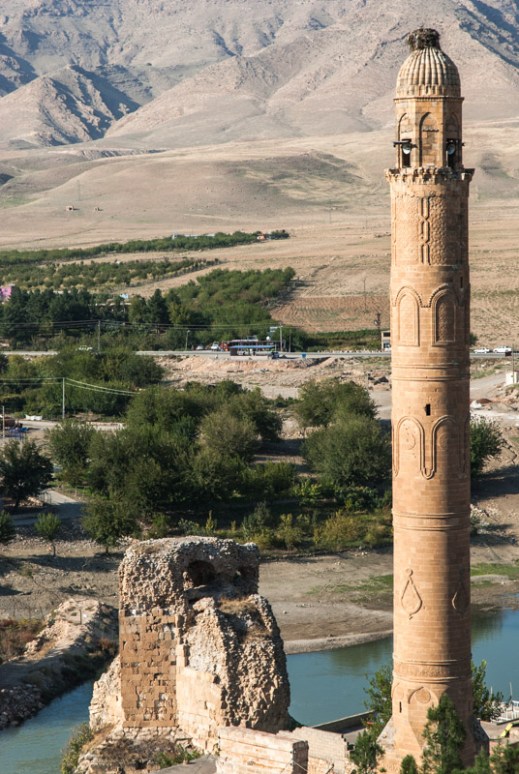 Joining the highway from Dara, I am driving exactly along the Syrian border; in places the barbed wire fence is just metres from the road. Beyond is a country of which I have very fond memories of visiting in 2006, though which is presently embroiled in a brutal civil war. In Nusaybin I head north, climbing back onto the Tur Abdin Plateau, passing through Midyat once more and descending to the Tigris River in the poignantly beautiful town of Hasankeyf. The legendary Tigris, which flows down to the fertile plains of Iraq and nurtured the origins of human civilisation, has carved steep cliffs in which caves were carved by Hasankeyf’s earliest inhabitants. Today the archaeological site is off-limits for ‘safety’ reasons, but amongst the scruffy buildings of the modern town are more endowments from the Artukids, who made Hasankeyf their first capital, such as the El Rizk Mosque with its ornately carved minaret, now topped by a stork’s nest. The valley below is very picturesque, with the turquoise Tigris watering stands of green trees in a powdery-grey, dry landscape; a scene which reminds me of the valleys of northern Pakistan or Afghanistan but one which sadly will soon disappear, to be flooded by the Ilısu Dam sometime in the next few years.
