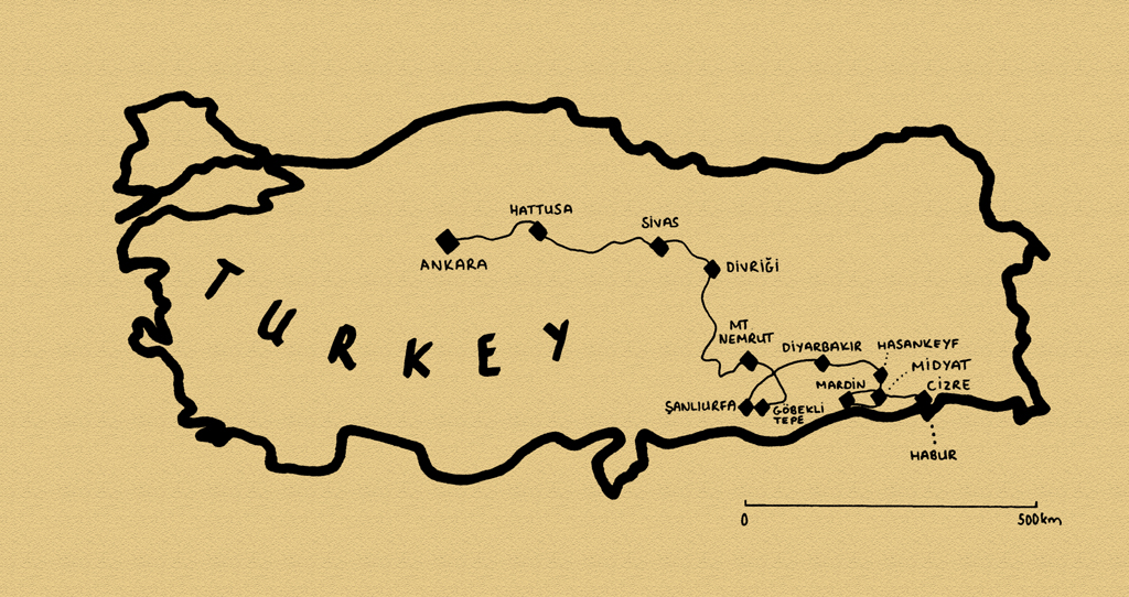 The final stage of my five-and-a-half month 2014 journey would take me diagonally across Turkey on a journey of more than three thousand kilometres, from the Iraqi border to the edge of the EU. Having only previously explored the predominantly Kurdish Armenian Highlands of the country’s east, I would now embark across several distinct regions of the country. The first part of this stage would take me from the hazy plains of Upper Mesopotamia, with their remnant population of Assyrians and Arabs through the tense, unofficial Kurdish capital of Diyarbakır then turn north into the rolling mountain landscape of Anatolia. Here I would see what strikes me as the Turkish heartland and glimpse layers of history from the most ancient Anatolians; the Hittites who centred their empire in Hattusa; the Eastern Roman buffer state of Commagene and the glorious architecture of the Seljuks, ancestors of modern-day Turks, before stopping in the Turkish capital, Ankara.