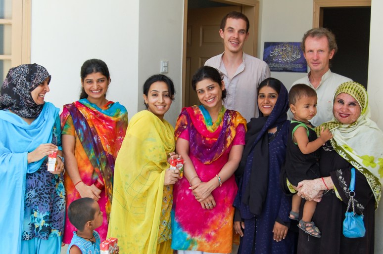 The Author, Aly and (left to right) teachers Sindhoo, Jannat, Yasmeen, Annie, Sajda, Asia, Hyderabad, Pakistan – 9th June 2009 – Photograph courtesy of Aly Bossin