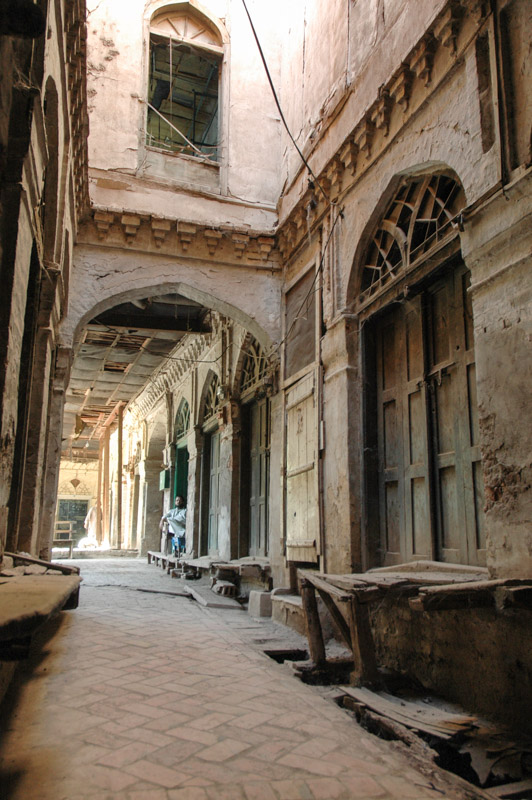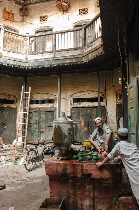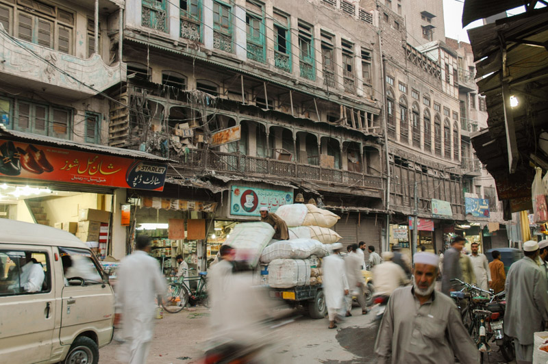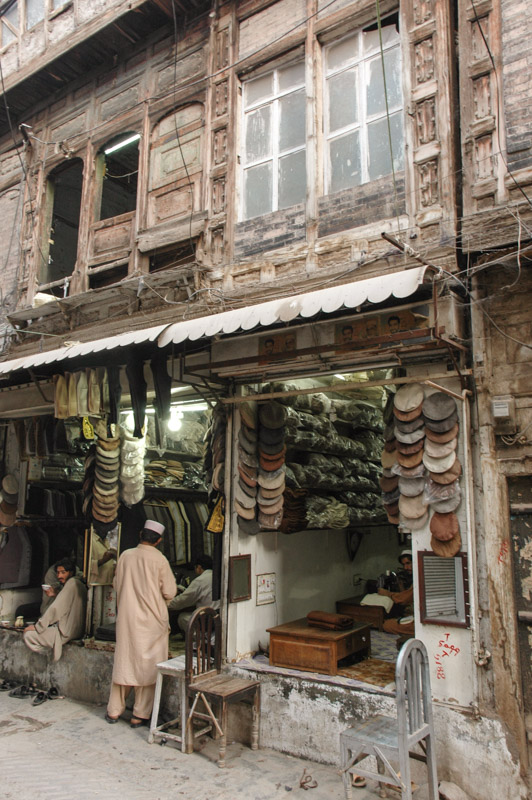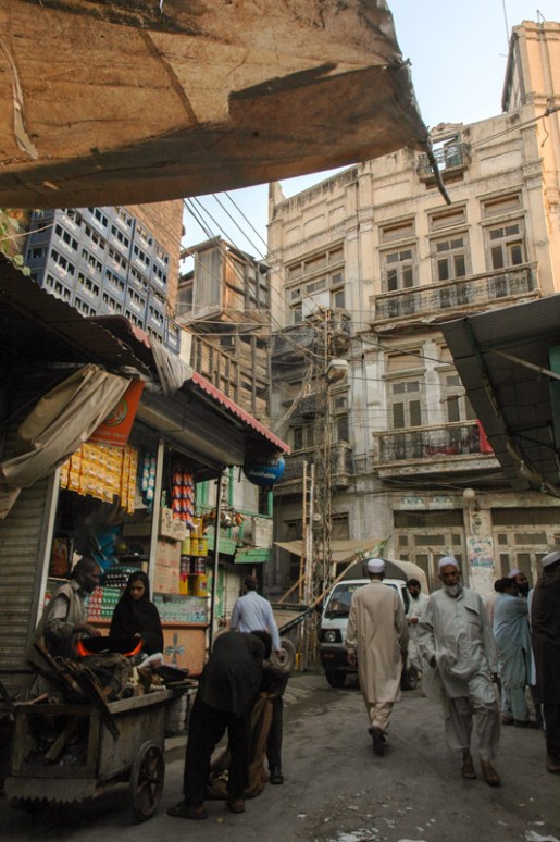 I drive to Peshawar on the Thursday, back into the clamorous Old City. When I was here last week, I had a light-hearted look around the bazaars; this time it’s the last stop before I take the plunge into Afghanistan. I have all visas and permits in hand, and am pretty much past the point of no return. I discover new joys in Peshawar however, finding a truly wonderful section of the Old City with just enough old charm and not quite enough smoking rickshaws and furious motorcyclists to make the place every bit as enchanting as Damascus or Shiraz. It’s a delight to sit sipping kawa (zesty green tea) on a charphai (rope bed) in the old Storyteller’s Bazaar, where merchants would come from India, Inner Asia, Persia and beyond to spin yarns and exchange information, as well as sell their goods. All around is the faded elegance of the old buildings; tall, elegant town houses of the rich old Hindu and Sikh merchants who are long gone, their splendidly faded abodes with carved wooden balconies and shuttered windows a leftover from old India, British India, a past era which has been utterly and irrevocably consigned to history.