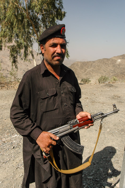 On the morning of the 10th October, I drive to the Khyber Political Agent’s office where I am to pick up my levies; members of the Khyber Khassadar Force (KKF), who are picked from Pakistan’s tribal areas and provide some semblance of security along the road to the border. In reality they are the subject of frequent attacks, and spend much of their time behind thick walls of sandbags, in fear of their lives. I’m feeling a little nervous; despite Shahab, who has driven the infamous Peshawar – Kabul road several times, reassuring me that it is fairly safe at present, I’m still about to enter a country where I have few contacts. I am also nervous in case this all comes to nothing, that something happens at the last minute which will prevent me from reaching my goal, after all the preparation and anticipation.