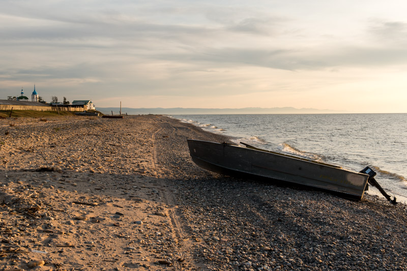 Long before the Trans-Siberian Railway, Posolskoye was the choice of landing point on Baikal’s eastern shore, and it was here that in 1651 Yerofey Zabolotsky, an envoy to the Mongols from the Russian crown, was murdered by local raiders. Thirty years later, the Holy Transfiguration Monastery was founded on the spot and while Posolskoye (the name deriving from the Russian for ambassador, posol) is now a sleepy village bypassed by all modern transport links, the large monastery remains. We enter the monastery grounds in the morning and are met by Nikolai, a priest with cropped hair, thick glasses and a mouth of gold crowns, who energetically shows us his well tended flower-garden and a simple ossuary where the skulls of former priests sit on an empty shelf. It’s a lovely spot, looking out over the vastness of Baikal.