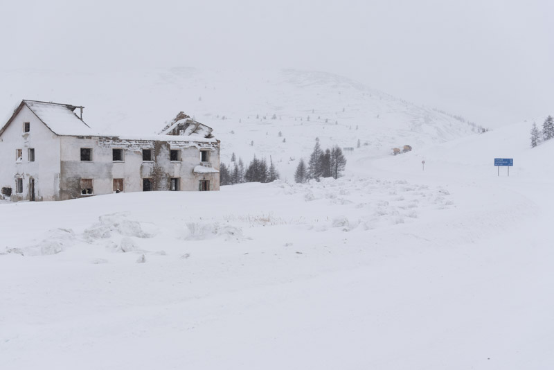 It’s snowing again the following morning and soon after starting out we turn off the Kolyma Highway onto a side track known as the Tenkin Route, which cuts through the mountain ranges and is a more direct and more scenic route to Magadan. We carefully negotiate a steep snowy pass, the new winter tyres proving themselves once again, and spend the day driving through a mountainous wilderness, crossing the Ayan-Yuryakh and Kulu Rivers, passing the half-abandoned gold-mining town of Omchak and shortly after, turning off the road. Crossing a small river we pass signs warning of radioactivity and enter a site known as Butugychag; a formerly secret Gulag camp where prisoners were forced to mine uranium from a nearby hillside. To reach the mines on the hillside requires crossing a a river which is now half-frozen and therefore unfortunately impassable for the car. We spend the night near the ruins of old administrative buildings and awake to a gloriously crisp winter morning at a temperature of -23º C. After a leisurely breakfast we carefully cross the river on foot using planks taken from a ruined building and investigate the lower part of the site, where a ruined processing facility bears graffiti dating back as far as the 1960s. From the top floor of the facility we look across the beautiful winter scene to the snow-covered hills in the distance, where we can just make out the old tracks leading to the mine shafts.