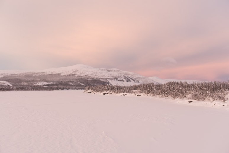 The temperature drops in the afternoon and the landscape takes on an ever more haunting beauty as the sun very slowly drops towards the horizon and my worries dissipate. I find myself in what is certainly one of the most beautiful places I have ever been, marvelling continually at the beauty of the trees freshly coated in snow yet frozen in absolute stillness; the utter emptiness and stillness on the road, where I pass just a few trucks; the vast, untamed wilderness sprawling in all directions and the fact that the Hilux Surf is performing utterly flawlessly in the cold as I drive through the winter scenes I have been dreaming of seeing for so long. I stop for fuel at a lonely petrol station which is staffed by the last inhabitant of the abandoned settlement of Kyubeme, then turn off the modern highway and onto the original Kolyma Highway, the infamous ‘Road of Bones’, which leads back eastwards towards Oymyakon, the world’s coldest permanent settlement. Here the scenery becomes yet more fantastic as the narrow, perfectly white track winds through a forest of larch trees heavily coated in snow. Occasionally trees overhang the track under the weight of their snow colour, their perfect white forms contrasting with the other-worldly blue-black sky. I stop to have tea and admire my surroundings as the temperature drops to around -35º C and I feel the magic of the deep winter. A little further down the road, just before darkness falls, a reindeer herd emerges from the forest; beautiful, inquisitive creatures who cautiously approach me in hope of being given salt.