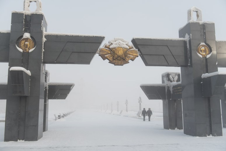 I’m very lucky to have connections in Yakutsk; I firstly meet Misha, a close friend of Alexey, a Yakut friend and colleague of mine, who escorts me to his own private heated garage complex where I leave the car, then drives me back to the house of my host, Nariyana, who returns from work shortly after I arrive. Now, in the depths of winter, Yakutsk is numbingly cold with a midday temperature of -38º C and is enveloped in a pall of fog created by power stations, heating systems, vehicle exhausts and even people breathing. Vehicles move carefully along the streets in billowing clouds of steam which never dissipates in the totally still atmosphere; with only the faintest hint of the clear blue skies which lie just above the fog. Outside apartment buildings those who do not have a heated garage leave their cars with tent-like covers from which only the exhaust pipe emerges, with a timer to start the engine when the temperature drops too low. Aside from these idiosyncrasies of living somewhere far colder than a commercial freezer, life goes on as usual and the cold does little to faze the hardy locals. In the evening I meet Misha again and go to a ‘Scottish Pub’ owned by Dima, Alexey’s brother. It’s an evening of high spirits but I drink uncontrollably and wake up the next day disoriented in Misha’s apartment, being muzzled by his wife’s hairless cat and suffering a horrific hangover.