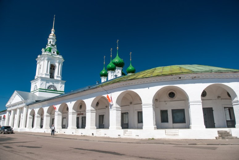 Kostroma has a delightful, preserved eighteenth and nineteenth century city centre radiating out on spokes from the central Susanin Square, named for a semi-legendary martyr who is said to have refused to reveal the hiding place of Tsar Mikhail to the Polish-Lithuanian occupiers of Russia at the time and was tortured to death in punishment. Amongst the grandiose, pastel-coloured administrative buildings are a distinctive fire-watch tower and a very nicely preserved, though rather quiet, example of city trading arches; a typically Russian marketplace which has often disappeared in Russian cities. I spend the day strolling around Kostroma; visiting an art museum, then walking down through a shady park to the river. It’s a perfect early summer day and whilst a few weeks ago the last dirty remains of the winter snow would have been lying around, now the city is at its most beautiful with all plants in bloom and people out in the streets. The temperature is in the mid-twenties and the sky is a cloudless deep-blue for the whole day; the start of the long, wonderful Russian summer. Down on the Volga, locals are enjoying the weather on a sandy riverbank, an excellent inland beach, where one can lie in the sand as the Volga slowly moves past on its way to the Caspian and feel quite detached from the stream of traffic crossing the city’s road bridge from the south. By late afternoon I am slightly regretting having to leave, feeling that Kostroma is one of Russia’s nicest cities.