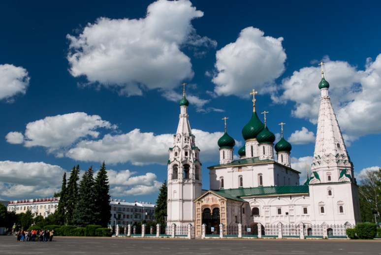 It’s not far from Kostroma to Yaroslavl, my next stop on the Volga. Founded as part of Vladimir-Suzdal, then becoming capital of its own principality, before being merged into the Grand Duchy of Moscow in the fifteenth century, Yaroslavl is the largest of the ancient cities lying to the north-east of Moscow, in an area (incorporating Zalesye) known as the Golden Ring. I’m hosted in the city by Roman, a local small businessman who works from home and who shows me the UNESCO World Heritage-listed centre of the city after dark. Yaroslavl has a centre filled with parks and churches but, perhaps due to its greater size, does not quite have the harmonious feel of Kostroma. I spend all of the following day strolling in Yaroslavl, visiting a wealth of churches, most spectacularly the Church Of Saint Elijah The Prophet, which sits in a large square and has a distinctive tent-style steeple and wonderful frescoes. What I most enjoy finding in Yaroslavl however is something in my experience very unusual in Russia. On the Volga Embankment is a tranquil, tree-lined street of tall beech trees and quality housing; not choked with traffic or filled with the vulgar black SUVs of local ‘biznesmen’ who ruin the area with crass cafes and boutique shops. Here instead is a slice of European sensibility; a genuinely pleasant, liveable centre to the city, with the cupolas of various churches visible in the gaps between elegant apartment buildings.