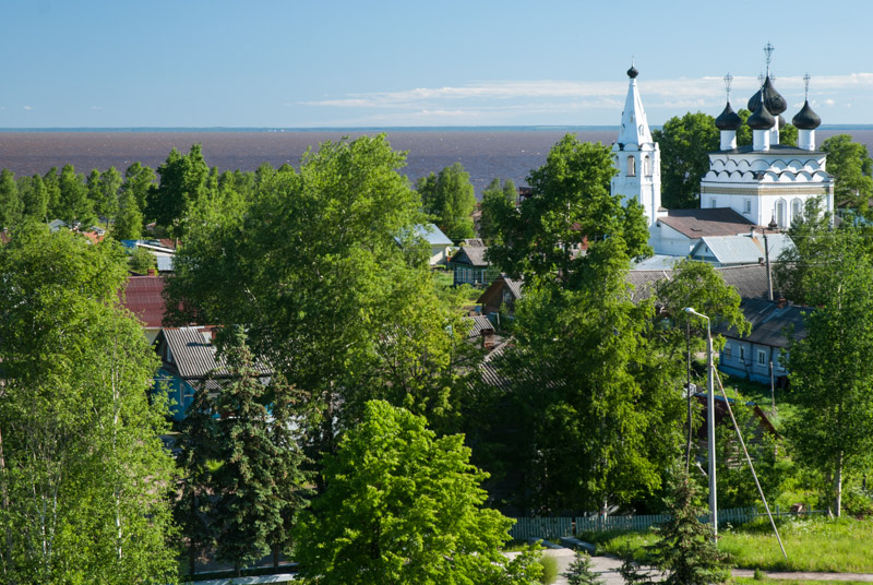 I find myself in the town of Kargopol the following morning which surprises me with its abundance of ancient churches; rather like a northern Suzdal, though totally devoid of tourists. Today a charming backwater, Kargopol is an ancient place and must once have been one of the northernmost settlements of the Slavs. With the opening of Arkhangelsk’s maritime trade route in the sixteenth century, Kargopol prospered as a staging post on the road from Moscow. The city’s fortunes also waned in parallel with Arkhangelsk’s, though like many of Russia’s most faded cities, it was also bypassed by the railway. All this makes me fall for Kargopol; a quiet, untouched slice of ancient Russia, and I spend several hours strolling and admiring numerous fine sixteenth to eighteenth century churches which spread along quiet streets roughly alongside the overgrown, grassy bank of the Onega.