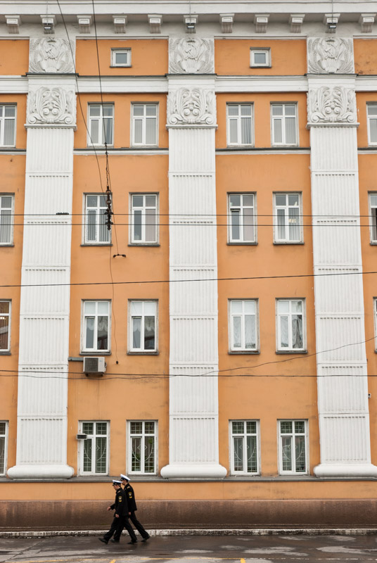 I make another walking trip into Murmansk the following morning, this time to the city’s elegant twentieth century centre which I immediately like. Murmansk is a city which seems to me remarkable only for how ordinary it looks, with little to distinguish it from other Russia cities. Murmansk was the type of far-flung outpost which the USSR could support, but in today’s post Cold-War, market-driven economy, despite remaining an important centre for the Russian Navy and Air Force, it is a city in decline. Thankfully, this does not translate to obvious decay and dereliction, but instead means that Murmansk’s centre is unspoiled by ugly modern development, retaining a harmonious centre of grandiose civic architecture from the heyday of the Soviet Union. In fact, the damp, patinaed pastels of Murmansk are perhaps the best-preserved example of a Soviet city I can remember seeing since Minsk.